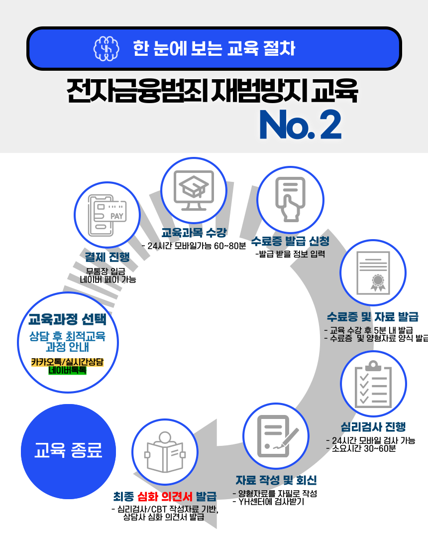 전자금융범죄 재범방지교육 + 준법정신 강화교육 +자기인식과 반성 교육수강 후 수료증과 기타 교육문답자료 양식을 제공해 드립니다.