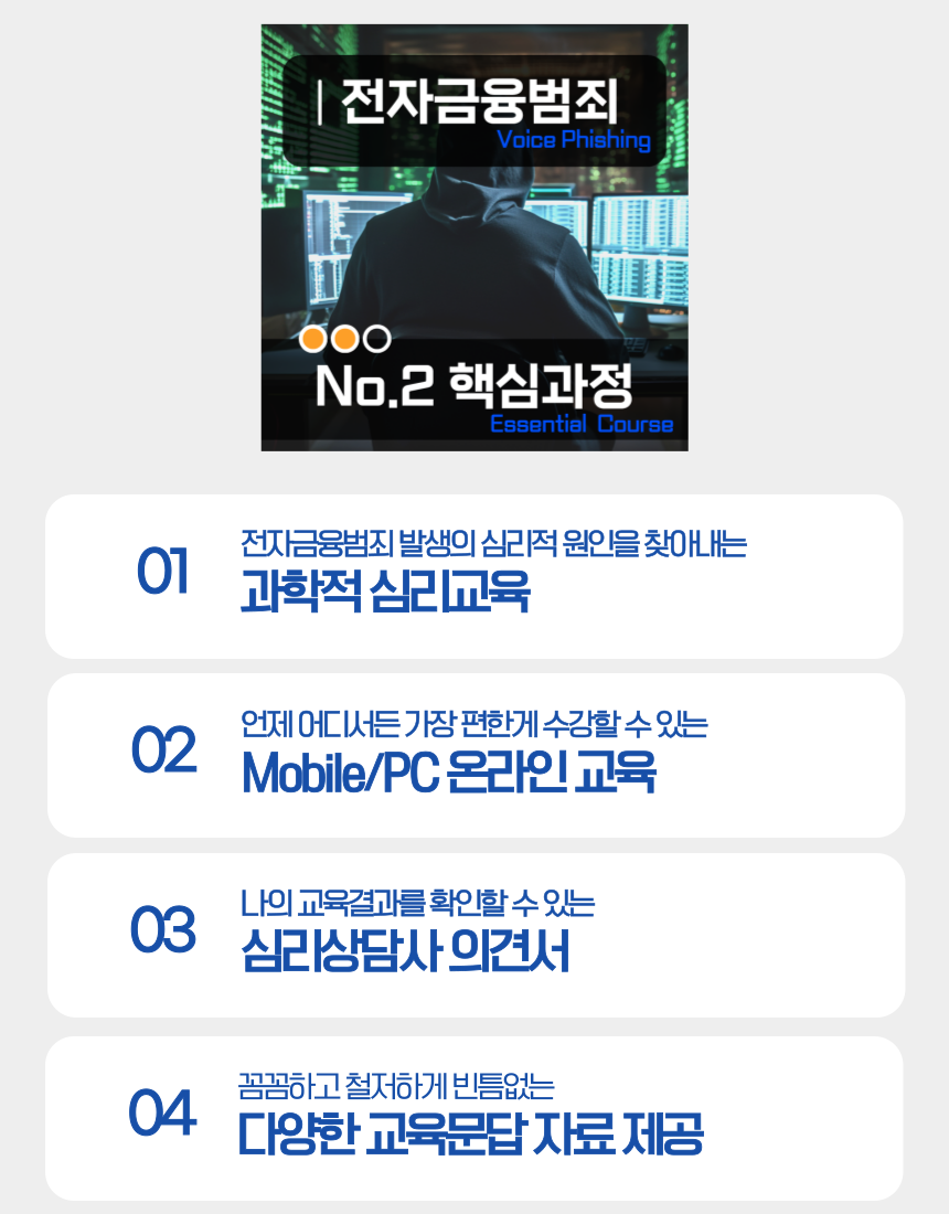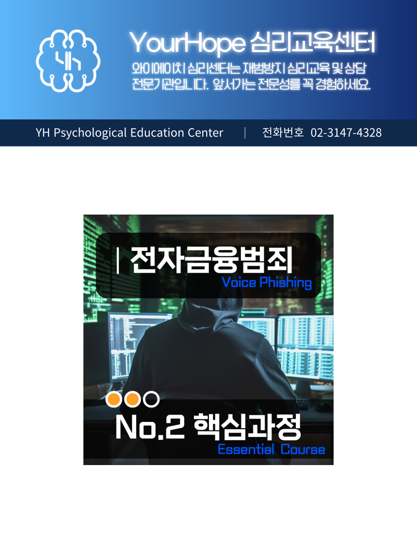 전자금융범죄(보이스피싱|전기통신사업법 위반) 교육 No.2 핵심 과정입니다.