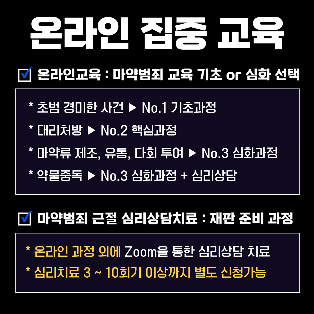 마약범죄 재범방지교육 + 준법정신 강화교육 + 자기인식과 반성 교육