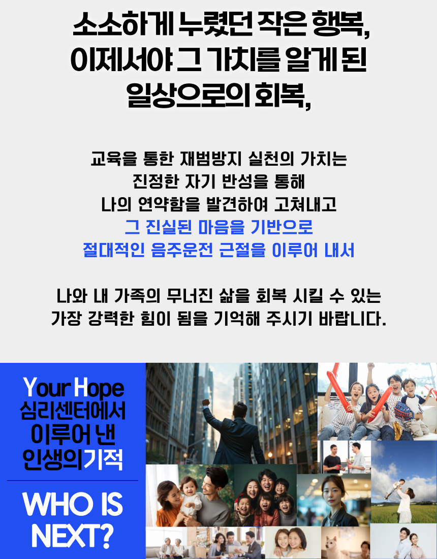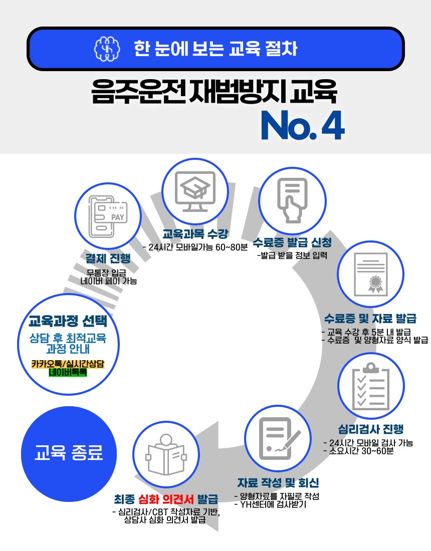 음주운전재범방지교육 수강 후 수료증과 기타 교육결과물 양식을 제공해 드립니다.