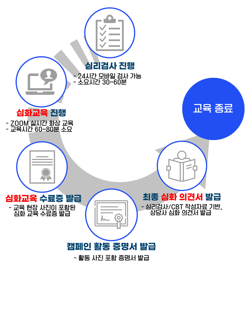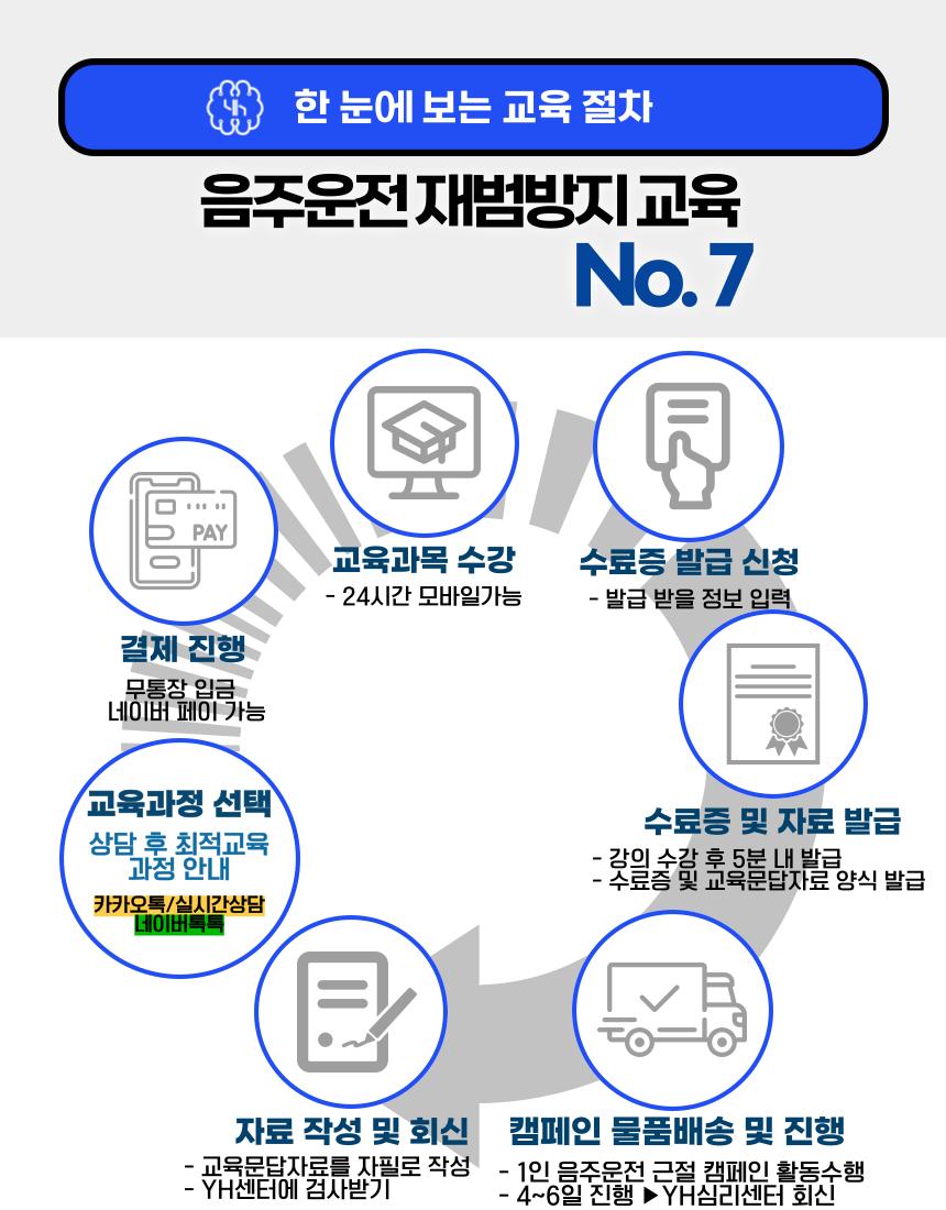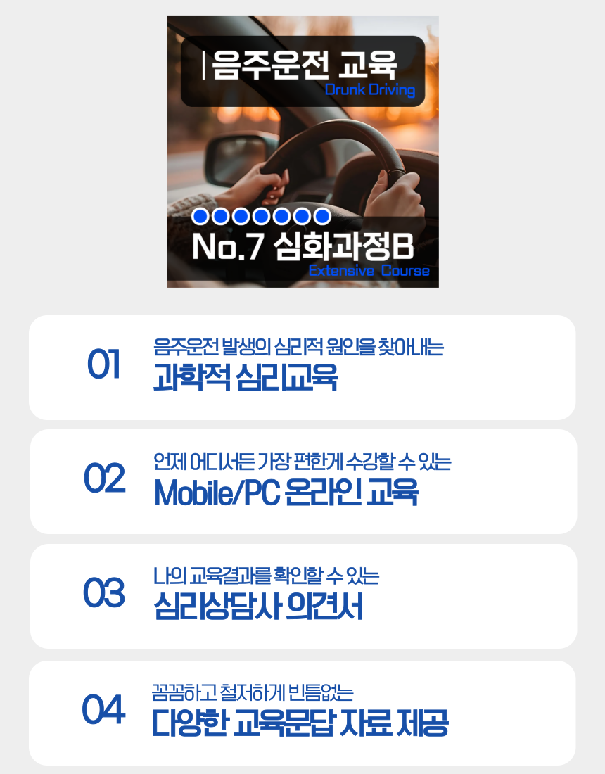 음주운전재범방지교육 + 준법정신 교육 + 자기인식과 반성 교육 수강 후 수료증과 기타 교육결과물을 제공해 드립니다.
