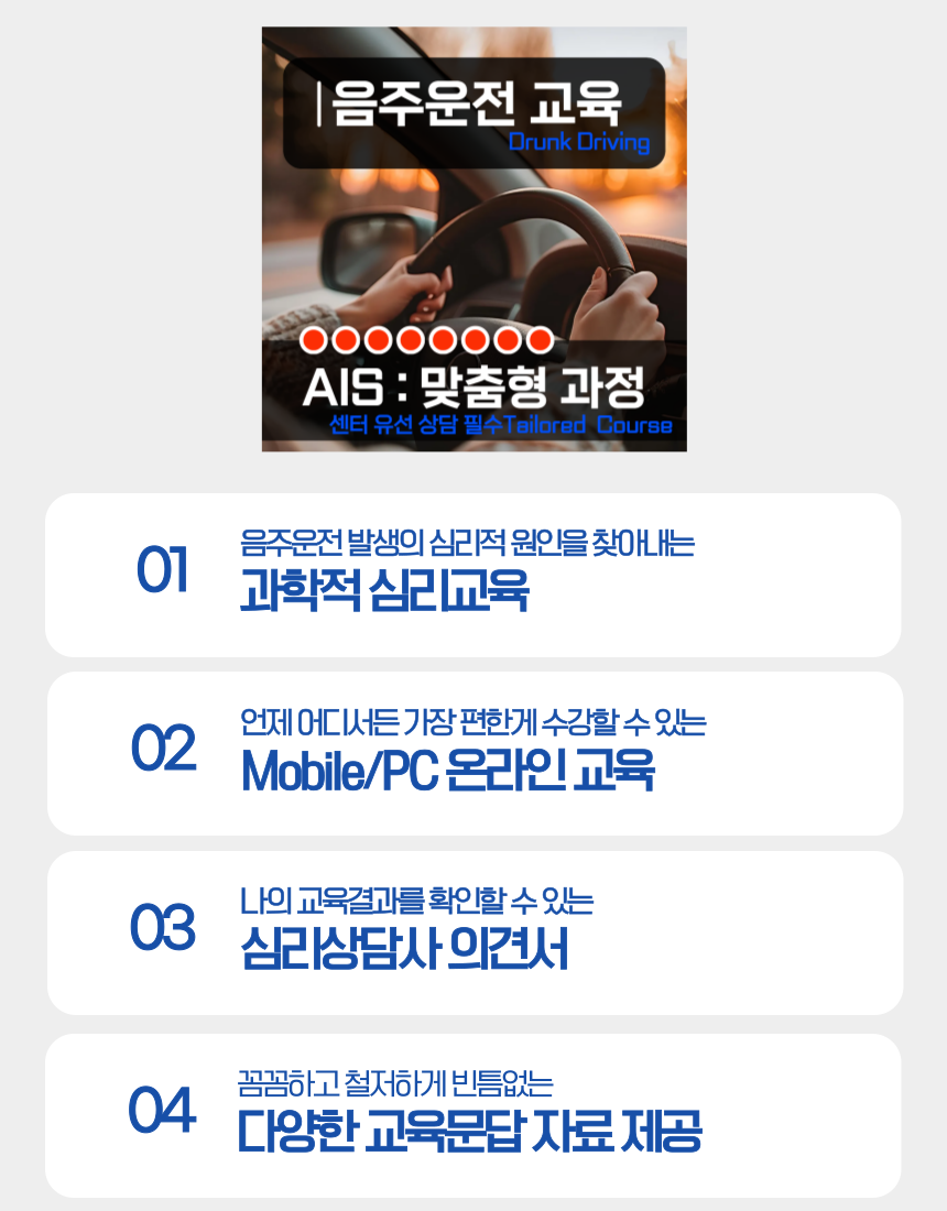 음주운전 교육 NO.8 AIS 맞춤형 과정입니다.