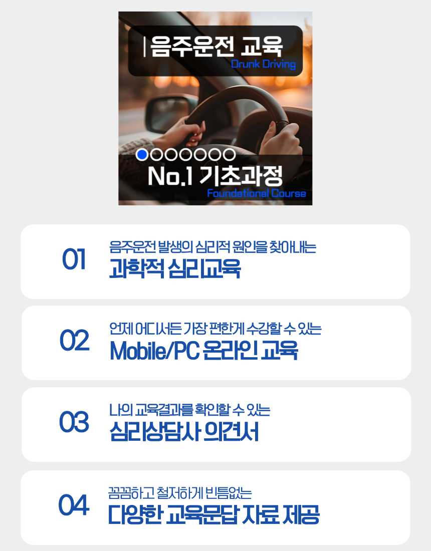 음주운전 교육 No.1 기초과정입니다.