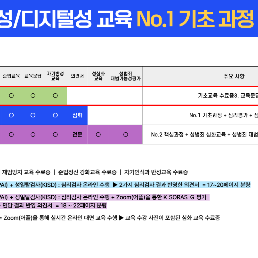 성범죄 재범방지교육 + 준법정신 강화교육 수강 후 수료증과 기타 교육문답자료 양식을 제공해 드립니다.